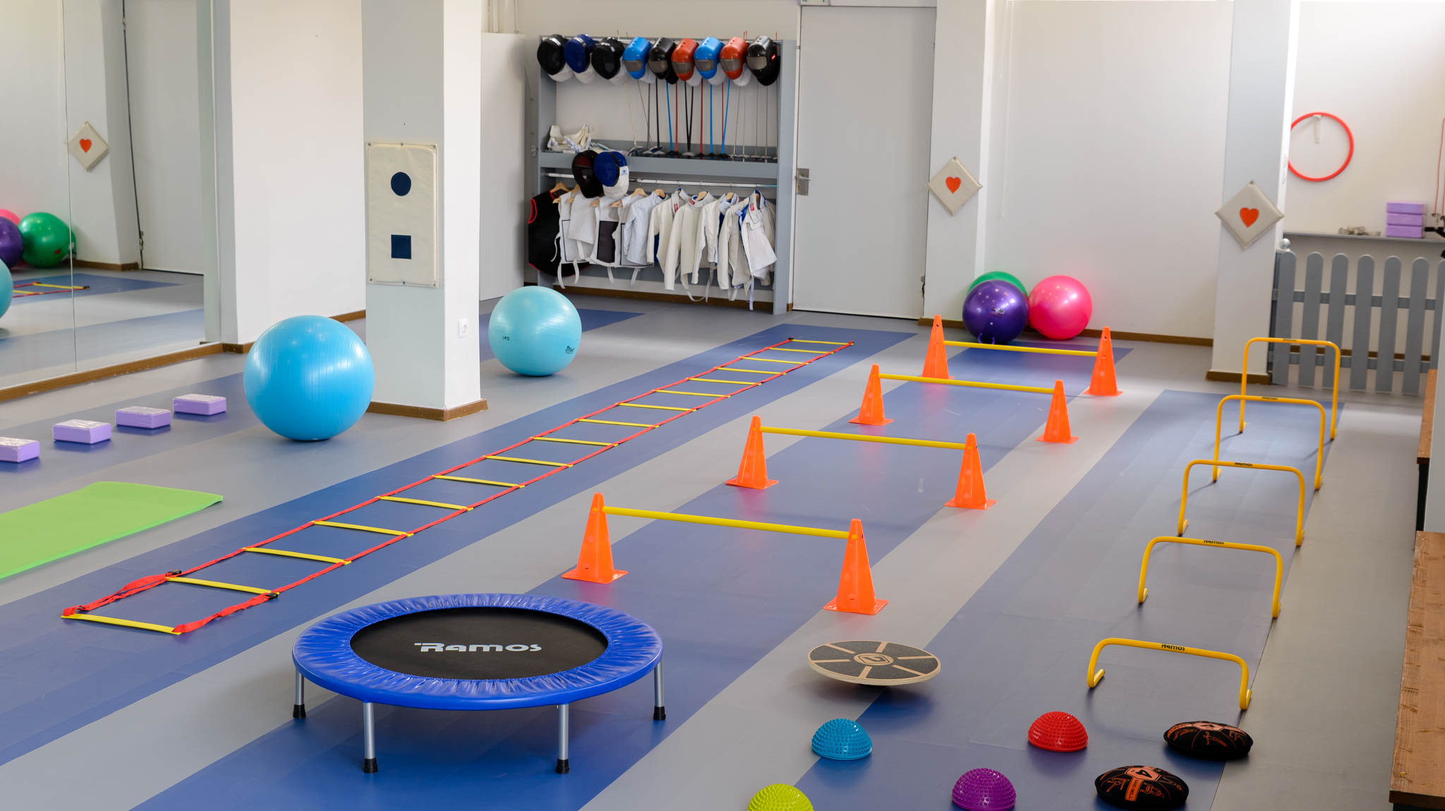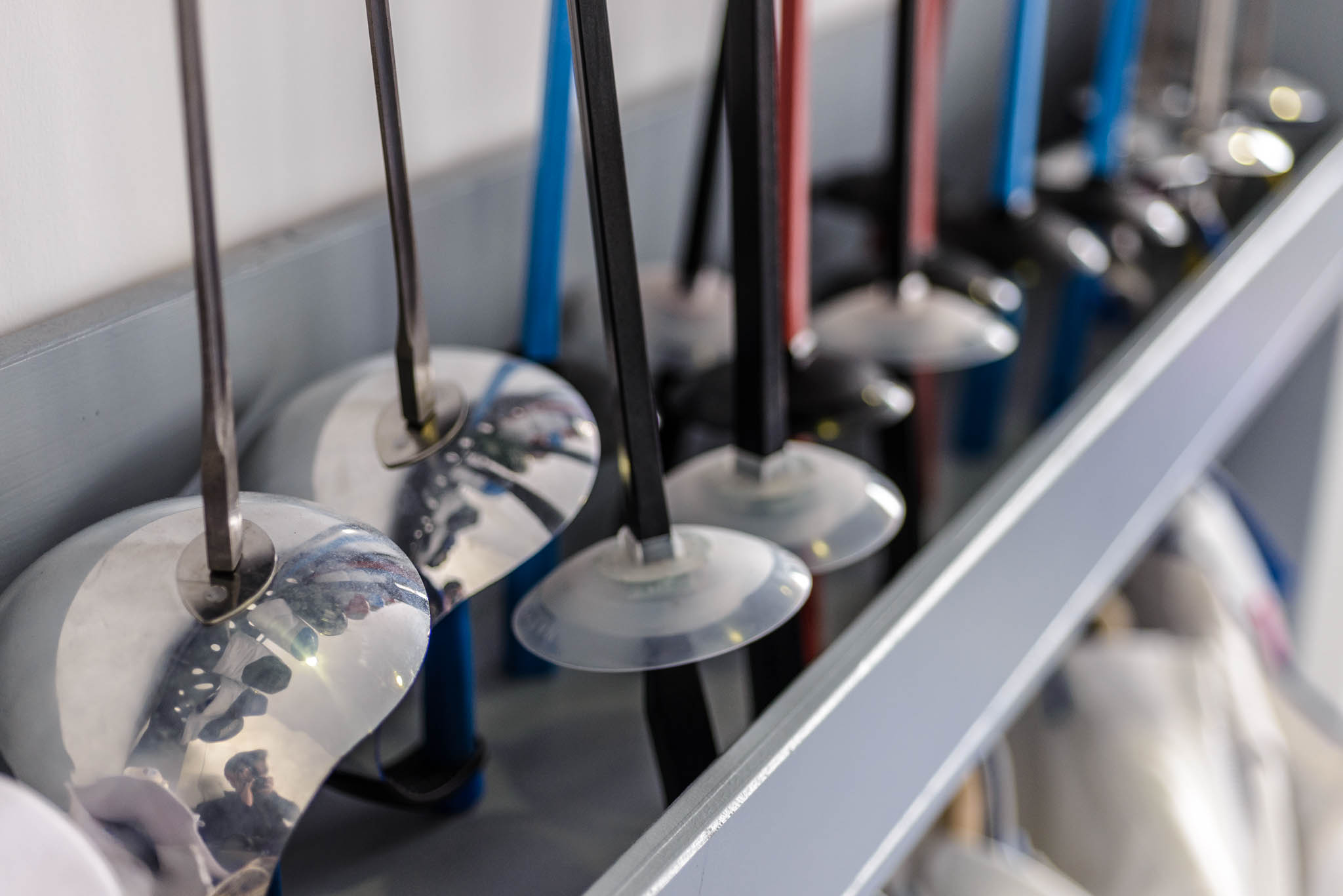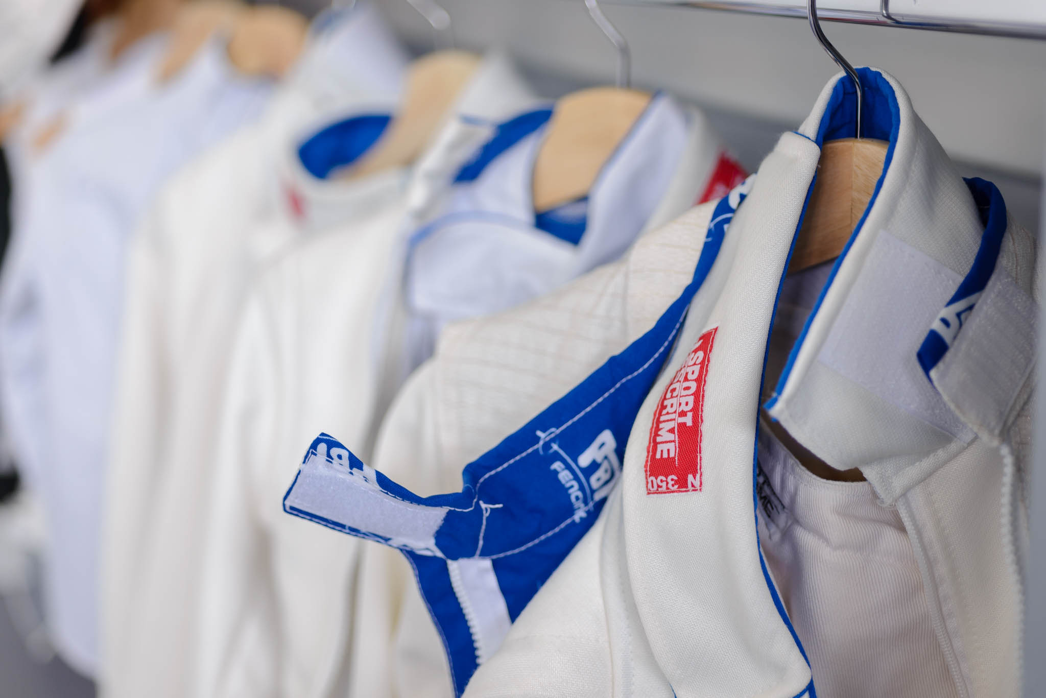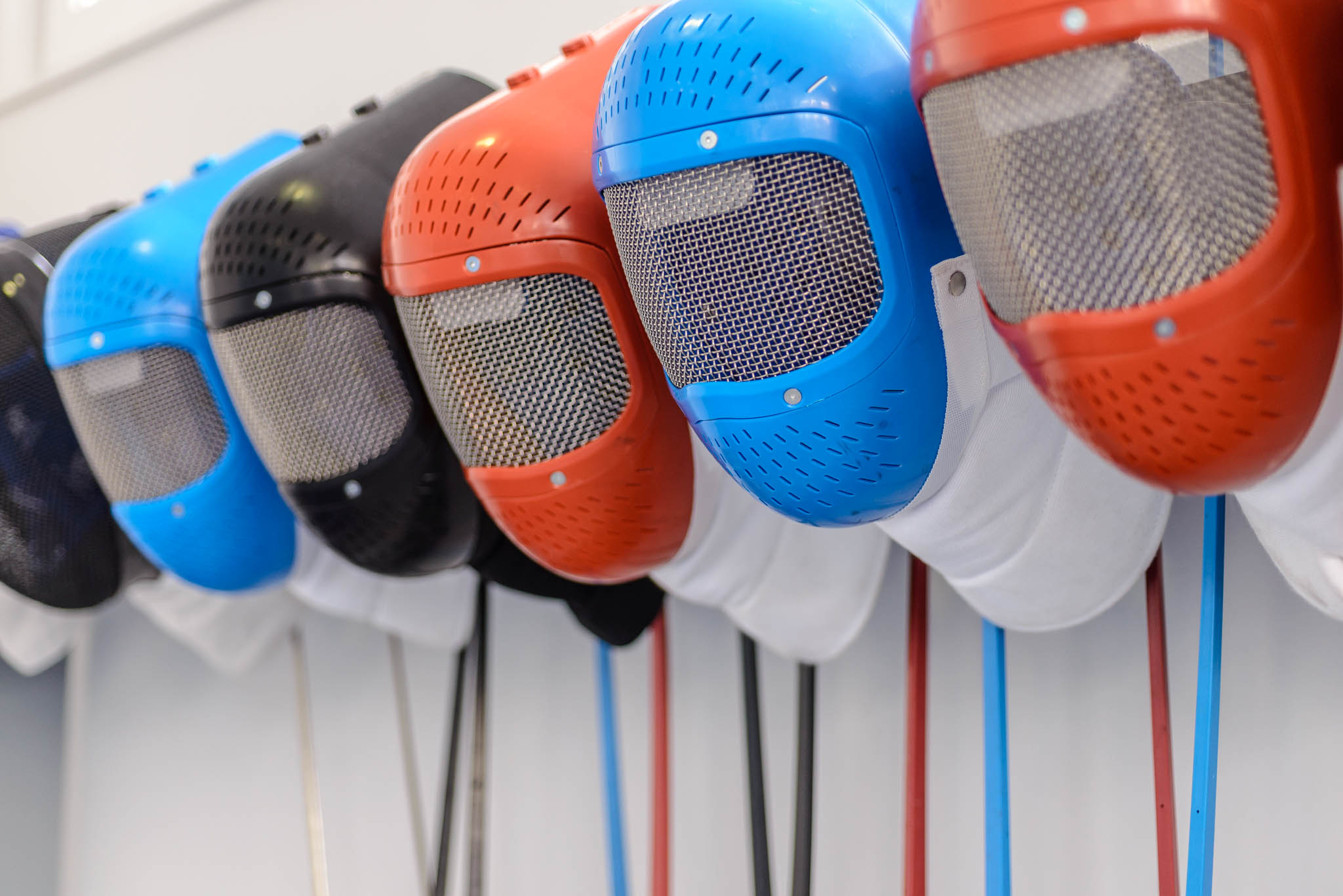 Στο διαμορφωμένο σταντ τοποθετούνται οι μάσκες, τα σπαθιά, οι στολές και τα γάντια , εξοπλισμός που παρέχεται δωρεάν από τον σύλλογο για την προπόνηση των μικρών και μεγάλων αθλητών.